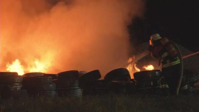 當晚,江南專汽研發的壓縮空氣泡沫消防車還成功進行了輪胎滅火實驗。實驗現場,四百個充分燃燒的輪胎,火焰高度25米,特制泡沫液僅用時1分53秒就將明火撲滅。